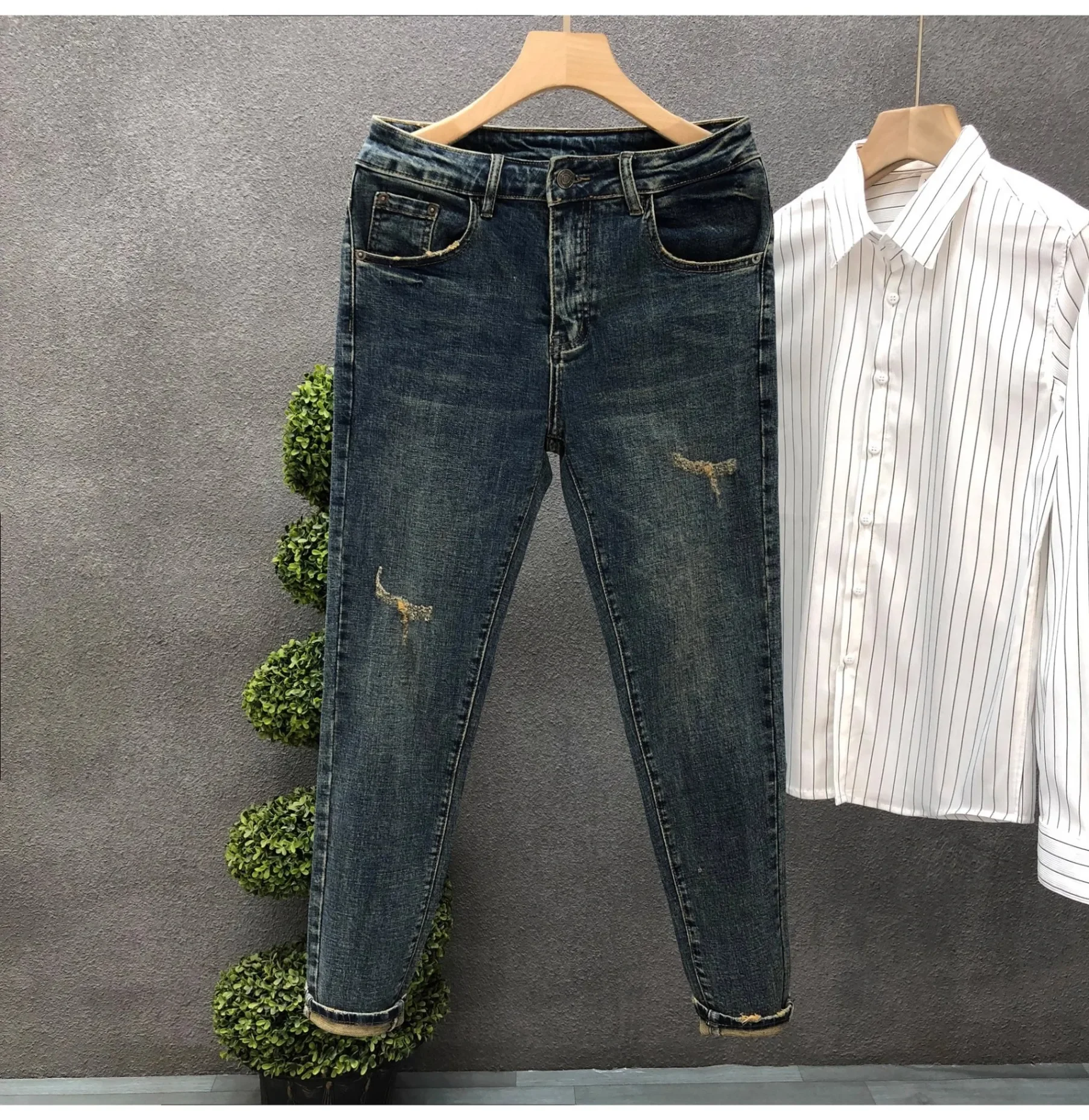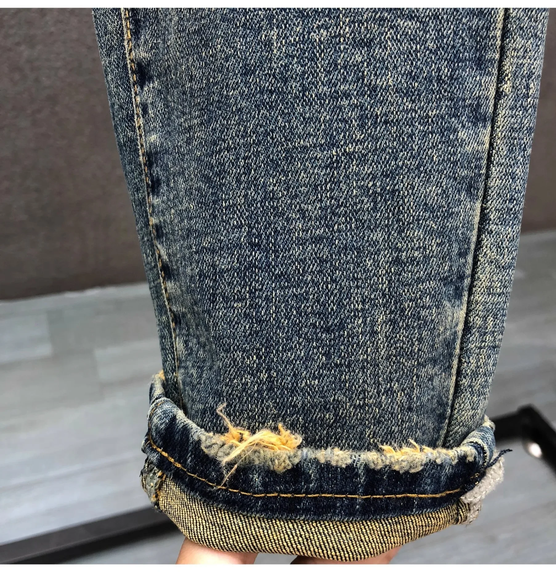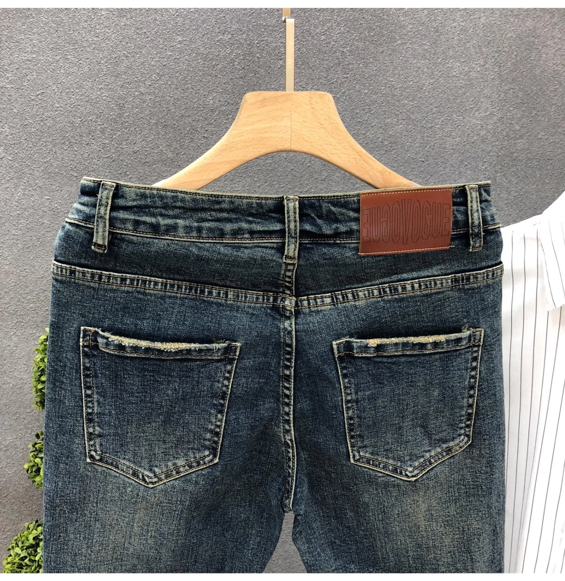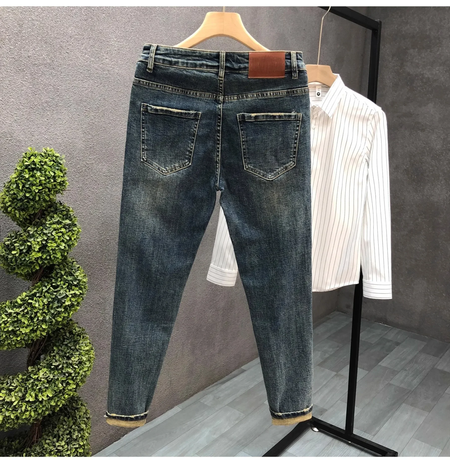 Retro Washed Men's Jeans Slim Fit Hole Design Spring Autumn Fashion High Street Style New Arrival Small Footed Pants